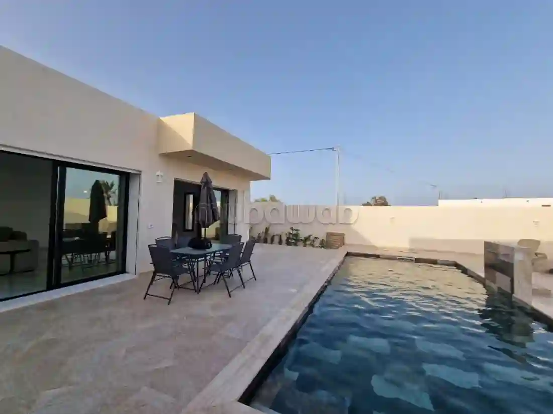 Découvrez cette charmante villa située dans un environnement calme et agréable à Tezdain, Djerba. Elle se compose de : Deux suites confortables Une chambre supplémentaire Un salon spacieux et lumineux Une cuisine équipée Une piscine privée