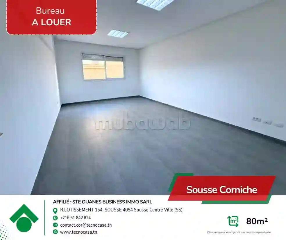 Il se compose d’un hall d’accueil, de deux pièces fonctionnelles, ainsi que d’un point d’eau et d’une petite kitchenette. Ce bureau se prête parfaitement à diverses activités professionnelles