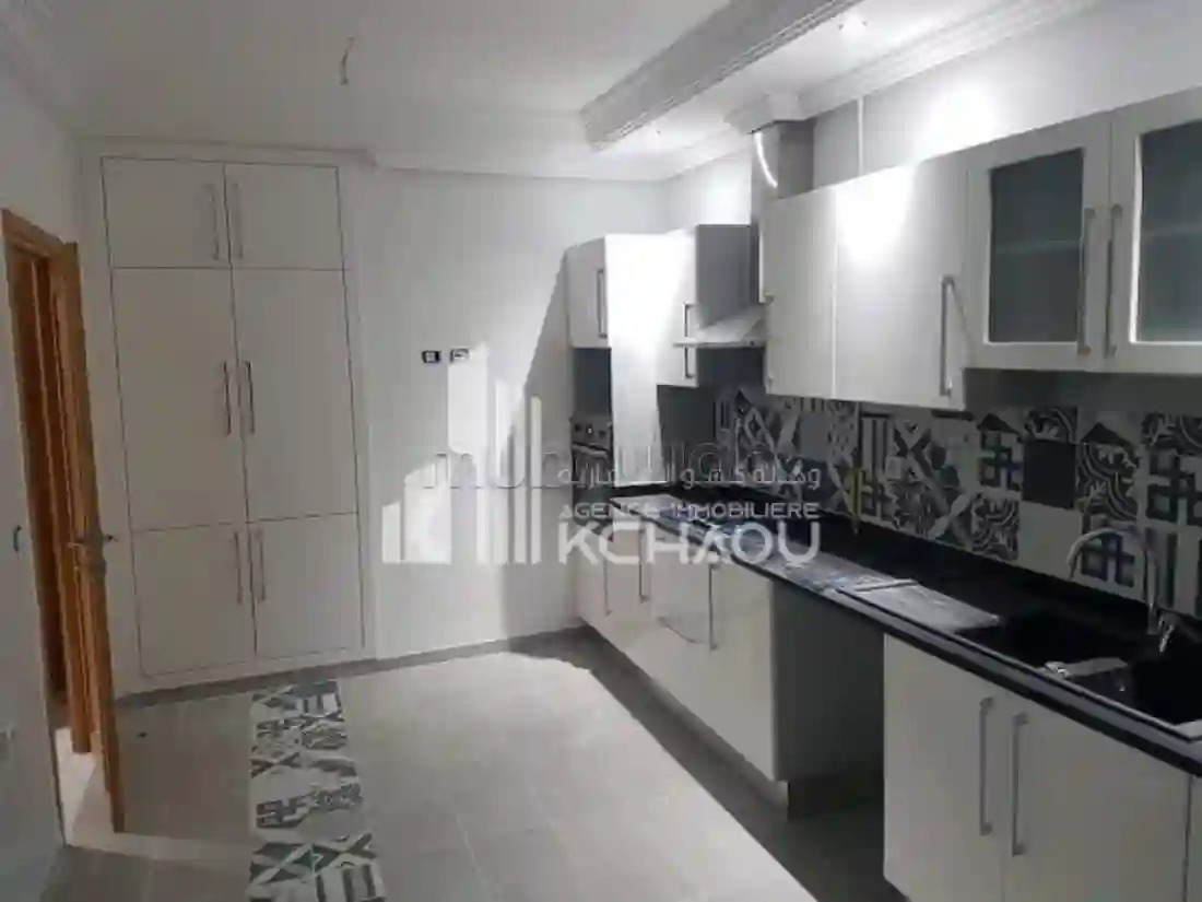 A Louer un Appartement S2 (vide) à El Menzah 9 C, dans un immeuble doté d’un double ascenseur ,composé d’un salon spacieux avec terrasse couverte , d’une cuisine meublée équipée (plaque, hotte , four ) avec sechoir ,une salle d’eau douche ,2 chambres à coucher dont l’une avec placard ,une salle de bain .l’appartement est doté du chauffage central de climatiseurs Split et de climatisation centrale,d’un visiophone et d’une place de parking sous sol . Pour plus d’informations contactez Agence immobilière KCHAOU au 55 523 500