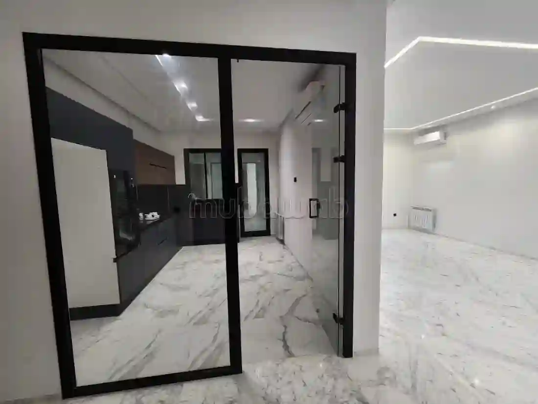 A louer : Appartement en S2 jamais habité au rez de chaussez aux jardins de Carthage Composition : -Salon avec balcon qui ouvre au jardin -Une Cuisine équipée (Hotte -Plaque -Four- ) avec séchoir -Deux chambres à coucher avec dressing -Salle de bain commune -salle d'eaux invités Climatisation chauffage place parking sous sol Loyer :2700dt /mois Pour le visiter et plus d'informations veuillez nous contacter sur le: 54819997 / 54819219