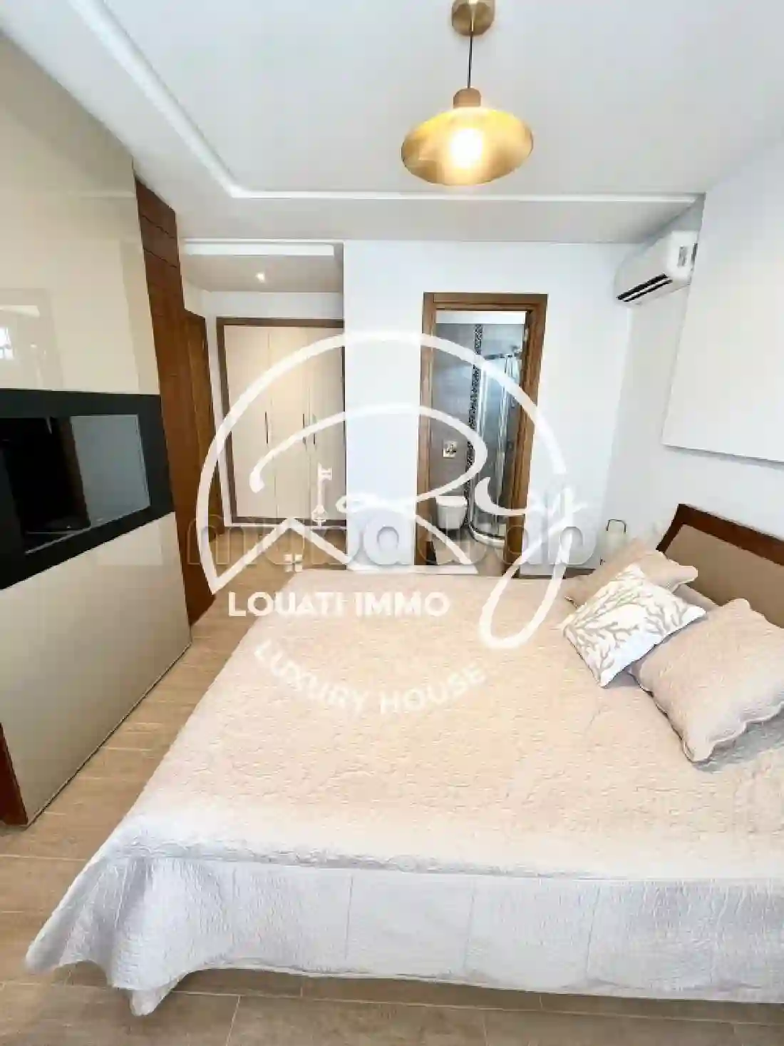 By Louati IMMO met à la vente un appartement S3 dans une résidence gardée et proche de toutes commodités. Cet appartement est situé au deuxiéme étage d’une résidence calme et sécurisée. La partie jour dispose d’un salon jouissant d’une luminosité grâce à son ouverture à un cuisine aménagée et équipée avec une plaque de cuisson une hotte aspirantefrigidaire elle donne un accès à un séchoir. La partie nuit est composé d’une suite et deux chambres à coucher partagent une salle de bain chauffage central une climatisation en split system . Un cellier et une place parkig sous sol est a votre dispositions.