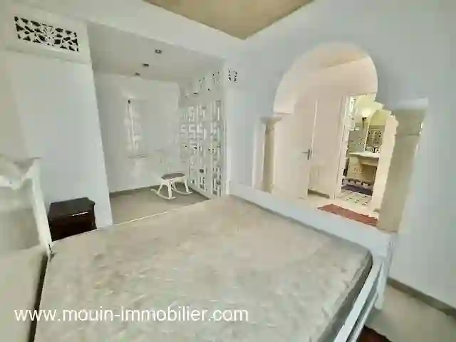 Adresse : 8050 Hammamet Hammamet Nabeul Appartement à louer à Hammamet Appartement Biblo AL496 A louer à l’année un charmant appartement au style arabesque bien situé à Hammamet à mi-chemin entre Zone La Gare et Le Centre Ville, proche de toute les commodités de la vie. Il offre un salon – une salle à manger ouvert sur une terrasse (patio), une cuisine bien aménagée, une petite buanderie, une salle d’eau invités, une chambre à coucher et une suite avec un dressing et une salle de bain. L’appartement est équipé de climatisation et de chauffage central. Prix : 1500 DT/mois Pour toutes informations nécessaires et éventuelle visite, vous pouvez nous contacter sur le 00216 29 105 844 / 55 844 605 ou par email à [email protected] Agence Mouin Immobilier International Vous trouverez toutes nos offres en visitant notre site web www.mouin-immobilier.com Location de maisons
