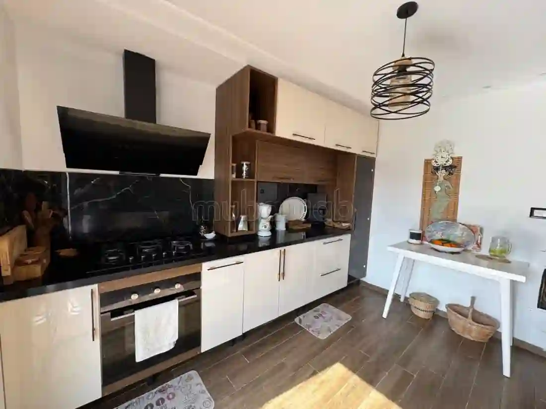 Cet appartement raffiné est situé au troisième étage d'une résidence sécurisée à Jinan Mansoura, bénéficiant d'une orientation optimale. La pièce de vie, spacieuse et lumineuse, permet l'aménagement d'un salon ainsi que d'un coin de séjour. Elle offre également un accès direct à une terrasse de 40 m², offrant une vue imprenable sur le fort de Kelibia. La cuisine, entièrement équipée, comprend une plaque de cuisson, une hotte aspirante et un four, et est agrémentée de grandes baies vitrées qui s'ouvrent sur la terrasse. La partie nuit comprend deux chambres à coucher, chacune équipée d'un dressing. Ces chambres se partagent une salle de bain commune, décorée dans un style victorien, alliant élégance et raffinement. L'appartement est également équipé d'une cheminée et d'un système de climatisation de type Split, garantissant un confort optimal en toute saison.