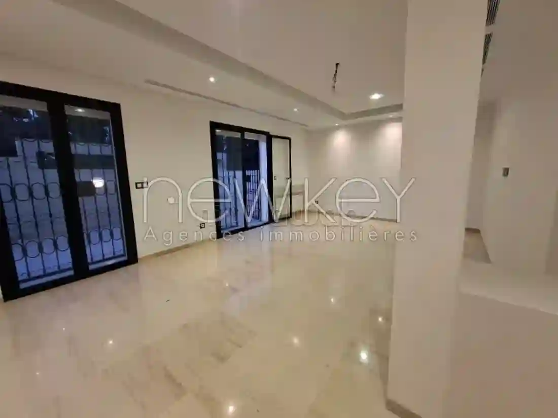 New Key La Soukra met à la location un appartement S3 au rez-de-chaussée d'une résidence récemment construite R2, calme et avec un excellent voisinage à La Soukra, non loin du parc. On y trouve un grand salon ouvert sur une terrasse, une cuisine équipée, une salle d'eau pour les invités, une suite parentale, 2 chambres à coucher avec dressings et une salle de bain. Une place de parking et un cellier sont à votre disposition. Référence du bien: Ref7637a