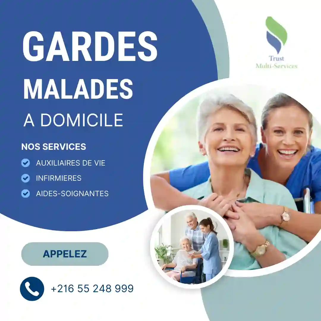 "Trust Multiservices met votre disposition des professionnelles pour accompagner des personnes malades et présenter un service d’aide à domicile en fonction de leurs besoins. Contactez : 55248999 - 24266000 https://www.trust-multiservices.tn/ " https://www.trust-multiservices.tn/"