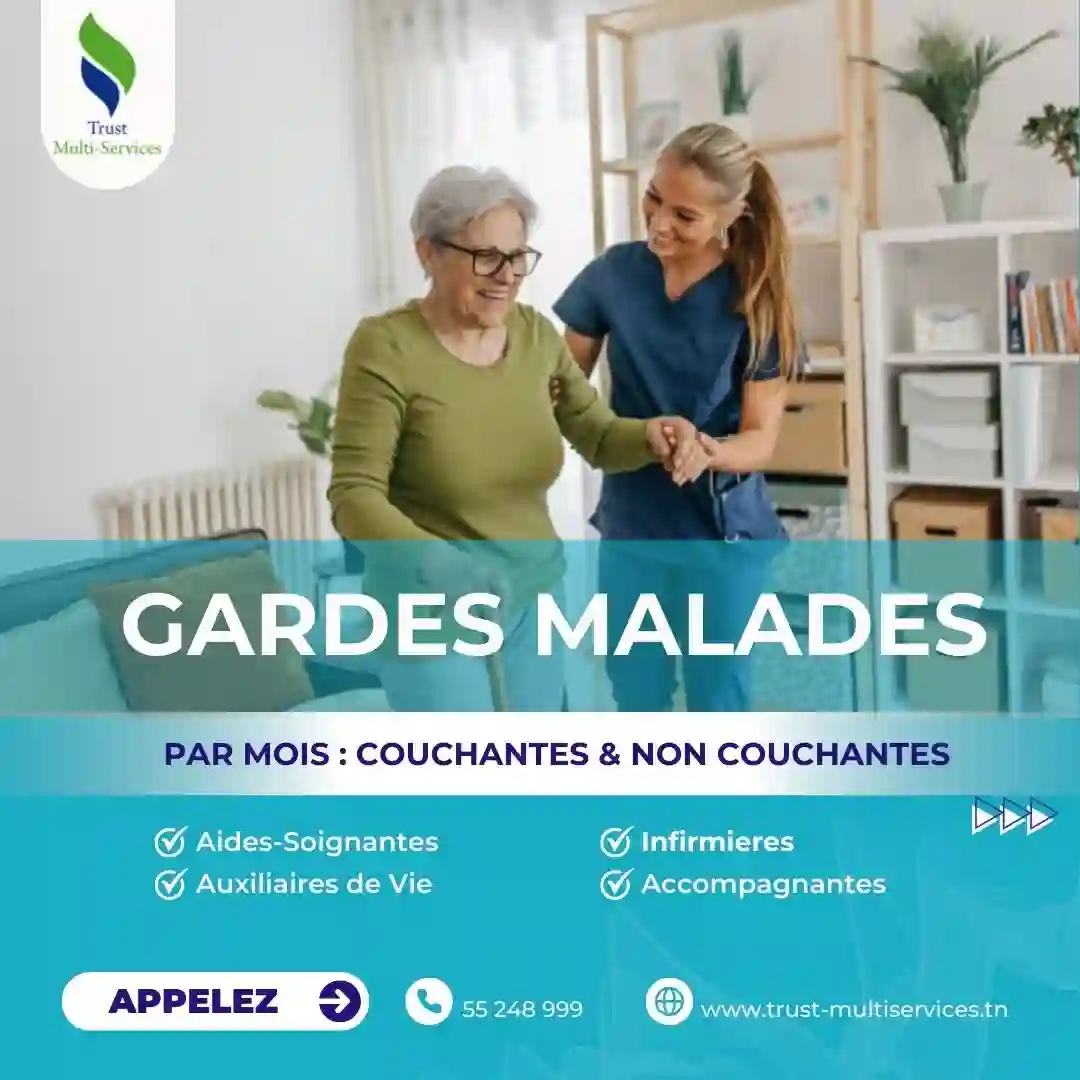 "Trust Multiservices met votre disposition des professionnelles pour accompagner des personnes malades et présenter un service d’aide à domicile en fonction de leurs besoins. Contactez : 55248999 - 24266000 https://www.trust-multiservices.tn/ " https://www.trust-multiservices.tn/"