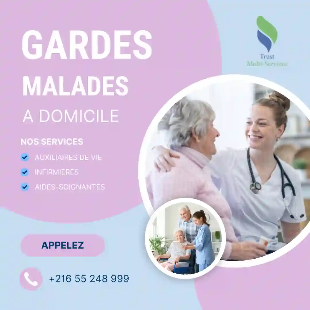 "Trust Multiservices met votre disposition des professionnelles pour accompagner des personnes malades et présenter un service d’aide à domicile en fonction de leurs besoins. Contactez : 55248999 - 24266000 https://www.trust-multiservices.tn/ " https://www.trust-multiservices.tn/"
