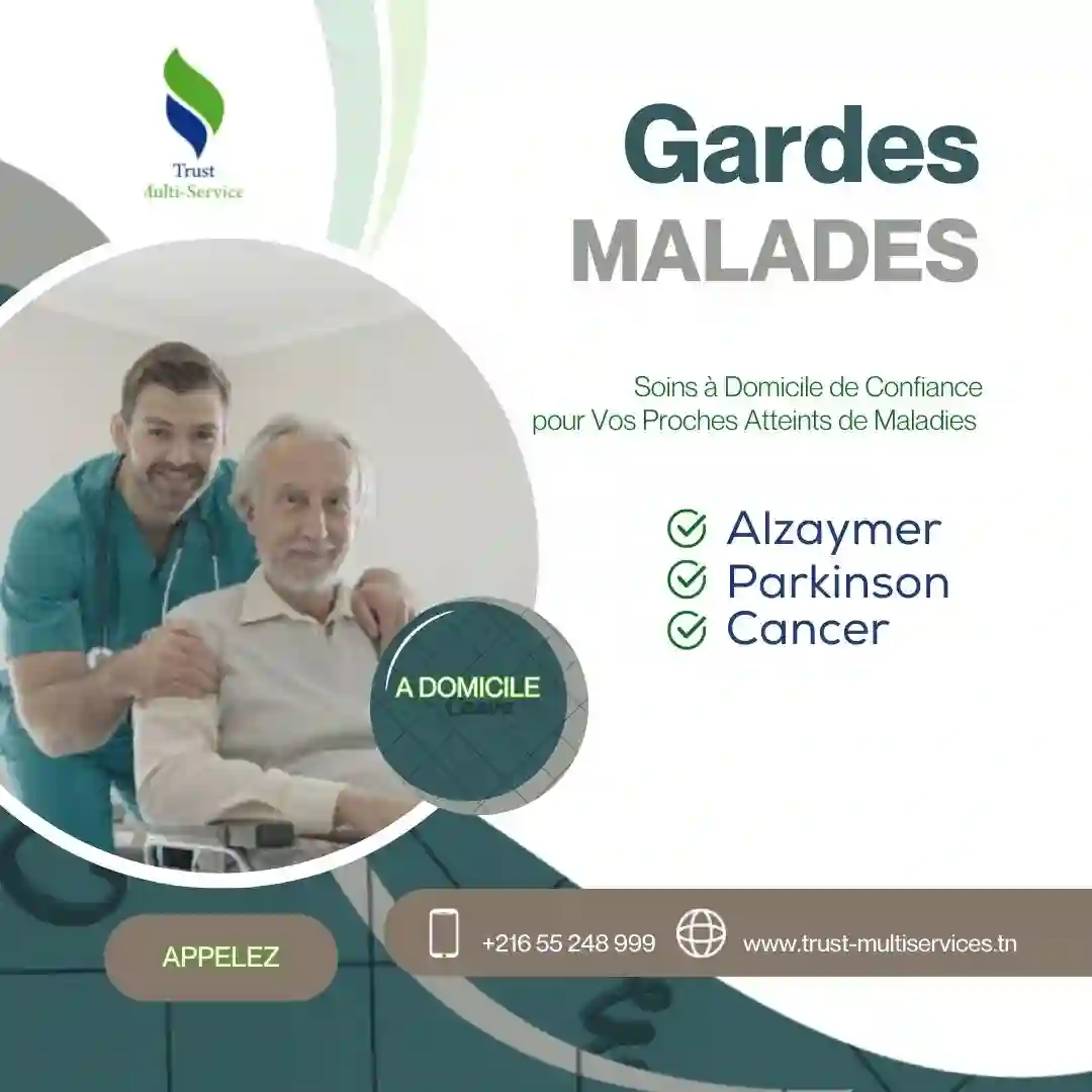 "Trust Multiservices met votre disposition des professionnelles pour accompagner des personnes malades et présenter un service d’aide à domicile en fonction de leurs besoins. Contactez : 55248999 - 24266000 https://www.trust-multiservices.tn/ "