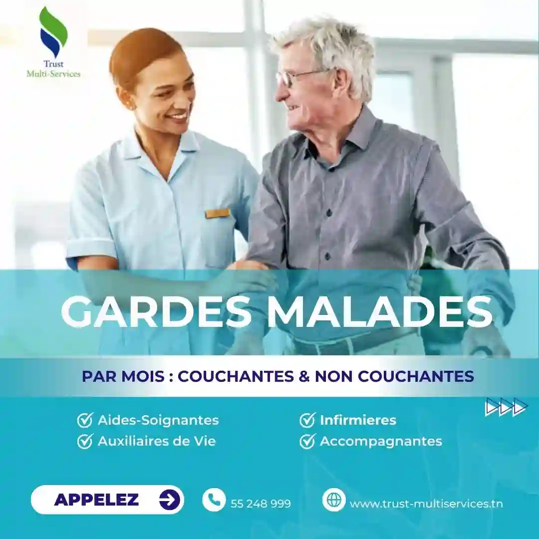 "Trust Multiservices met votre disposition des professionnelles pour accompagner des personnes malades et présenter un service d’aide à domicile en fonction de leurs besoins. Contactez : 55248999 - 24266000 https://www.trust-multiservices.tn/ "