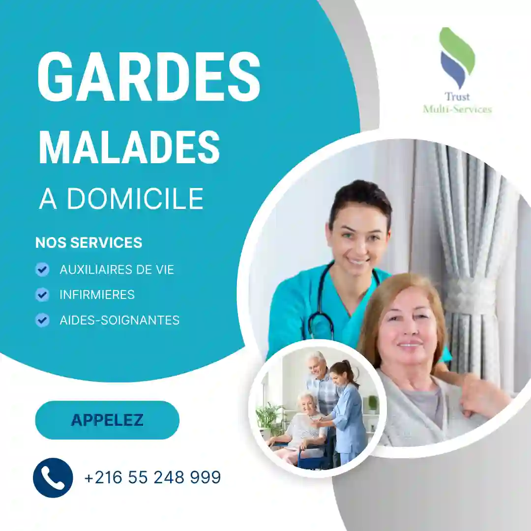 "Trust Multiservices met votre disposition des professionnelles pour accompagner des personnes malades et présenter un service d’aide à domicile en fonction de leurs besoins. Contactez : 55248999 - 24266000 https://www.trust-multiservices.tn/ "