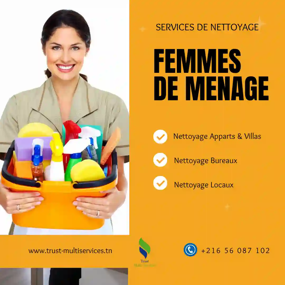 "Looking for a trusted housekeeper for a full day in Tunis? Our agency provides experienced and reliable housekeepers who ensure a clean, fresh, and organized home. We guarantee high-quality service, punctuality, and total satisfaction. Whether you need daily cleaning, deep cleaning, or occasional help, we are here to assist you. 📞 Contact us: 56087102 – 24266000 Professional Housekeeper Per Day in Tunis — Reliable, Fast, and Efficient"
