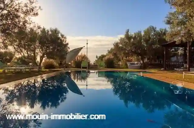 l’havre de paix av1976 agence mouin immobilier international vous présente un véritable havre de paix immergé en pleine nature reposante à el monchar ii. un cadre agréable et serein répartit sur un domaine agricole de 2,5 hectares sur lequel trône une belle demeure au charme atypique. la propriété compte une belle villa au style de chalet avec une piscine olympique, divers annexes dont 3 bungalows, terrain de tennis, basket, salle de sport, sauna et une salle de réunion externe. la villa est composée d’un immense salon aménagé d’un coin cheminé, une salle à manger en merisier, une verrière équipée d’un salon et d’une table de salle à manger, un coin billard, une grande cuisine toutes équipée et aménagée d’un coin repas. la partie nuit à l'étage compte deux suites.la propriété compte également un espace de service extérieur contenant, une buanderie, une cuisine secondaire, une chambre de services.