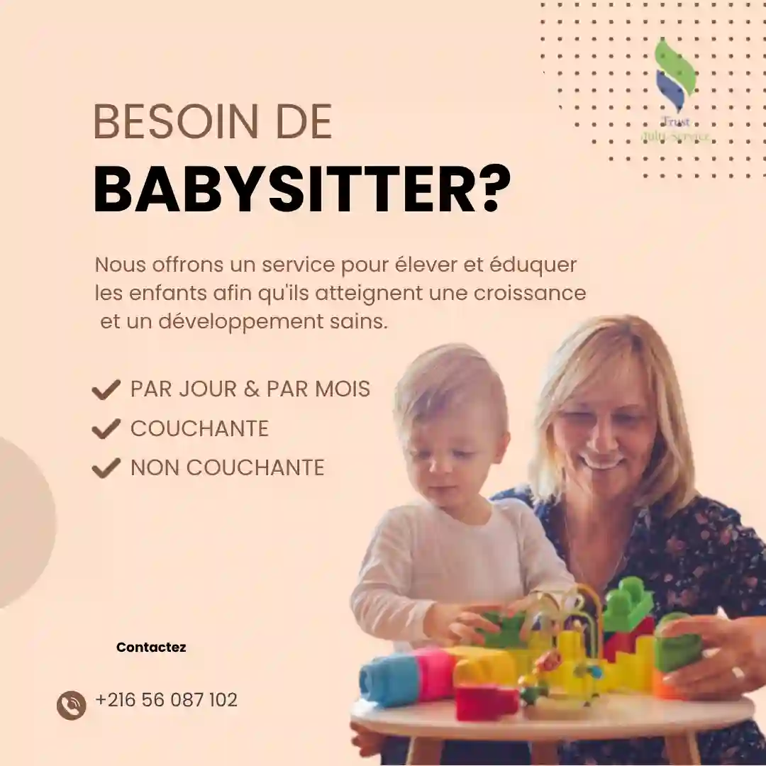 "Vous avez besoin d’une : Nounou à domicile, fiable et attentionnée, Pour veiller sur vos enfants pendant votre absence. Par mois (couchante ou non couchante) ? Ou Pendant les Week End / les Vacances ? Appelez le 📞 24. 266.000 📞 56.087.102 "