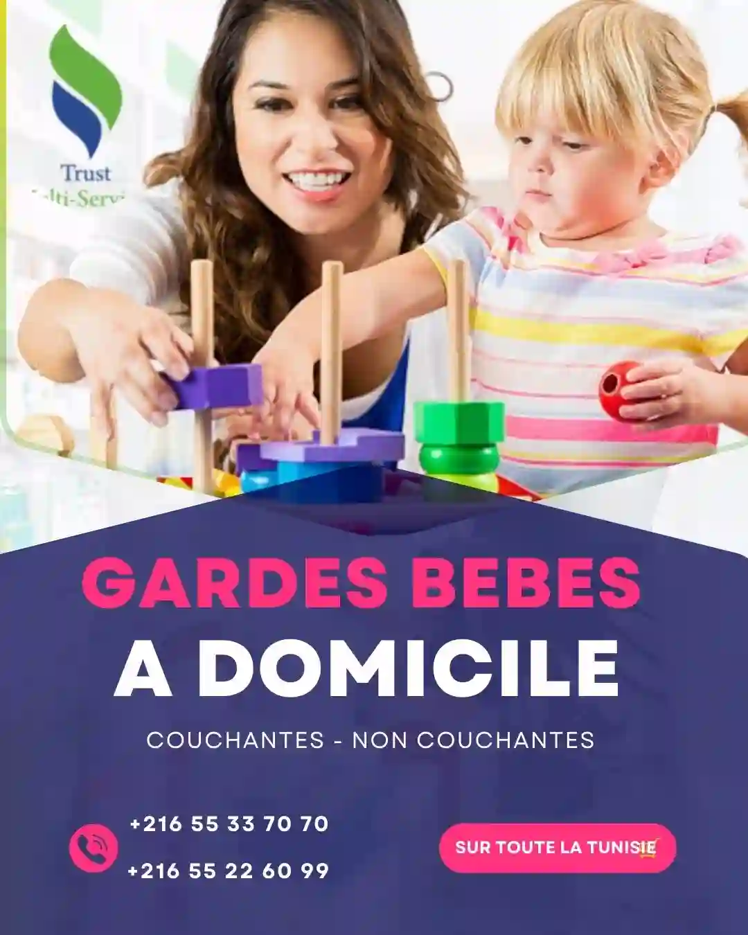 "Vous avez besoin d’une : Nounou à domicile, fiable et attentionnée, Pour veiller sur vos enfants pendant votre absence. Par mois (couchante ou non couchante) ? Ou Pendant les Week End / les Vacances ? Appelez le 📞 24. 606.405 📞 55.33.70.70 "