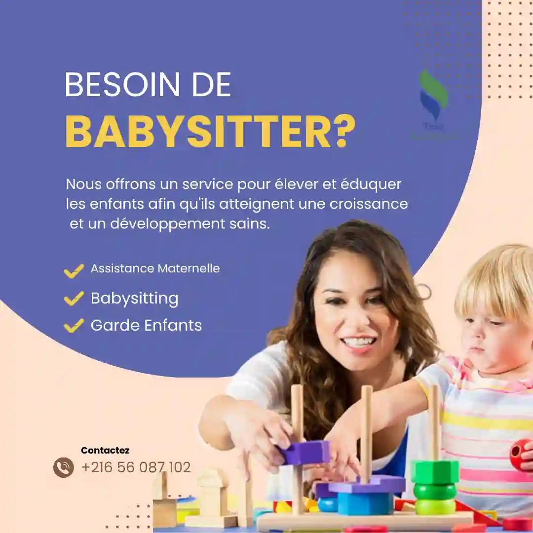 "Vous avez besoin d’une : Nounou à domicile, fiable et attentionnée, Pour veiller sur vos enfants pendant votre absence. Par mois (couchante ou non couchante) ? Ou Pendant les Week End / les Vacances ? Appelez le 📞 24. 266.000 📞 56.087.102 "