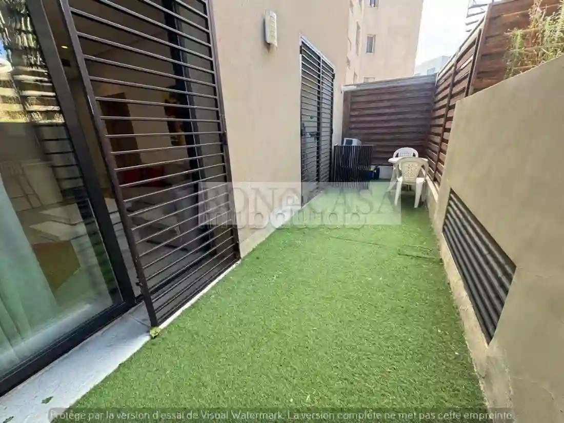 BONACASA vous propose à la location un coquet appartement richement meublé situé au rez-de-chaussée d'une petite résidence calme et bien sécurisée. Il se compose d'un salon lumineux donnant sur un joli jardin, une cuisine américaine entièrement équipée, une chambre à coucher avec dressing et une salle d'eau avec une douche à l'italienne.