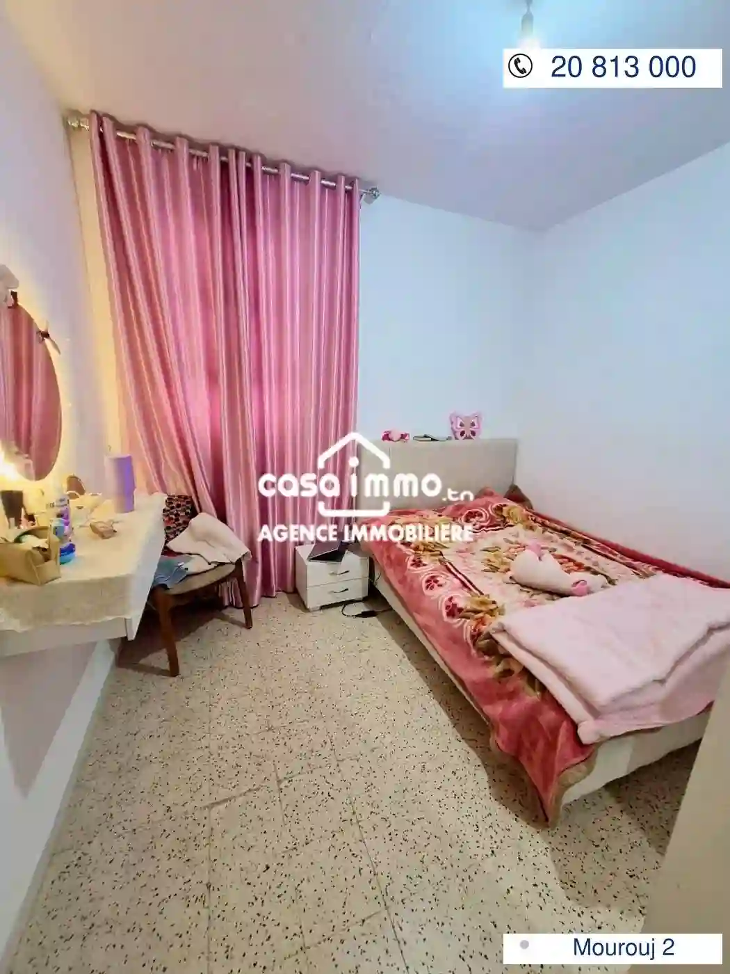 opportunité à saisir mourouj 2 vous cherchez un appartement bien situé à prix étudié ne ratez pas cette occasion s2 au 1er étage rond point du pont mourouj 2 83 m2 emplacement recherché composé d'un salon avec deux spacieuse chambres , une cuisine agencée avec séchoir et une salle de bain idéal habitation ou investissement rentable