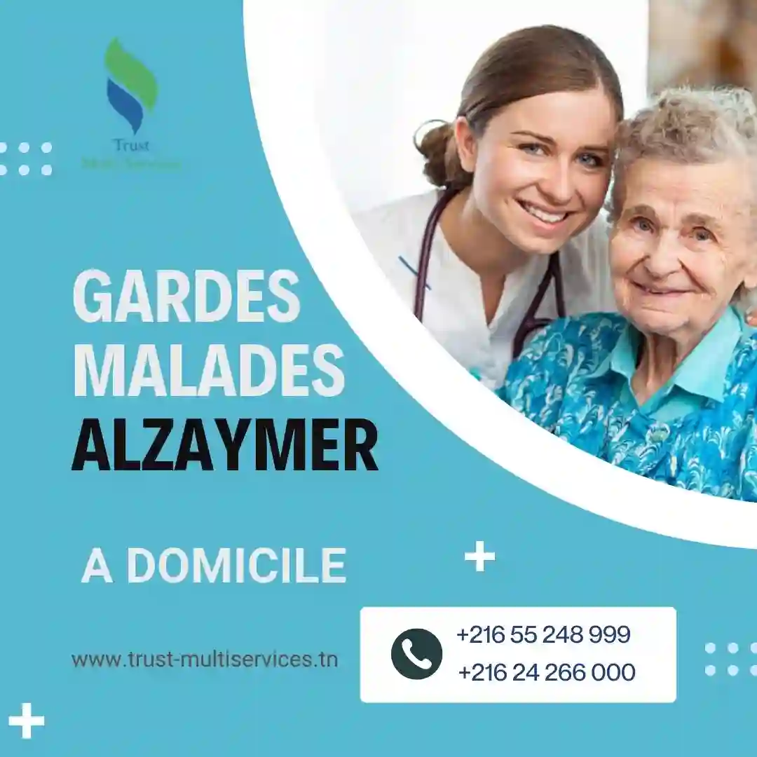 "Trust Multiservices met a votre disposition des professionnelles pour accompagner et garder des personnes malades d'Alzaymer. La societe présente un service d’aide à domicile en fonction de leurs besoins. Contactez : 55248999 - 24266000 https://www.trust-multiservices.tn/"