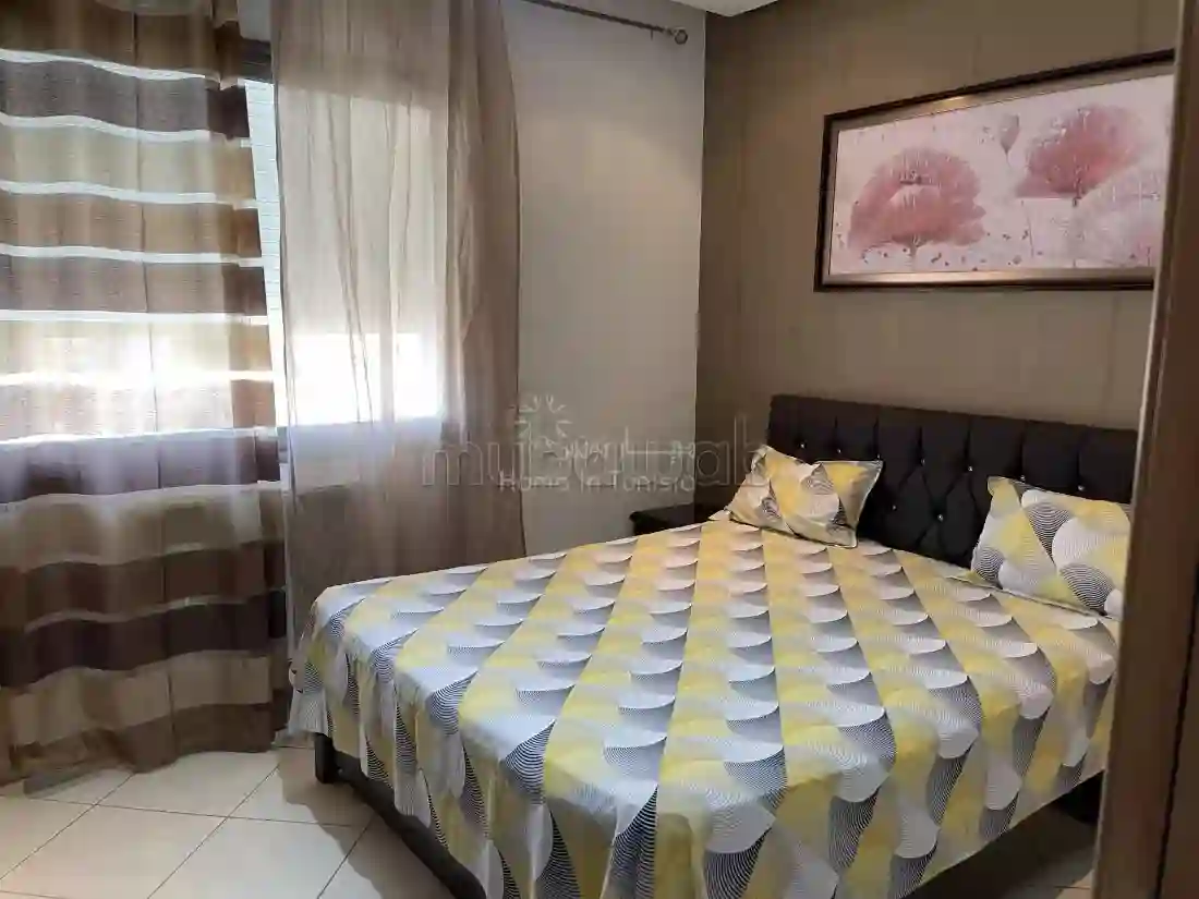 À louer, un superbe appartement de type S2 en très bon état, situé dans un emplacement idéal à Sousse, à proximité de l’hôtel Tej Marhaba et du Panorama. L'appartement se trouve au 3ème étage d’un immeuble moderne avec ascenseur, à proximité de toutes commodités. L’appartement se compose de : Un salon spacieux et lumineux 02 chambres à coucher confortables Une cuisine entièrement équipée Une salle de bain avec baignoire jacuzzi Un grand balcon pour profiter de l’extérieur Climatisation et chauffage central dans chaque chambre Place de parking privée devant l'immeuble Profitez d’un cadre agréable pour un séjour court terme alliant confort et proximité de tous les services nécessaires. Disponible pour la location saisonnière. Réf. 6513063