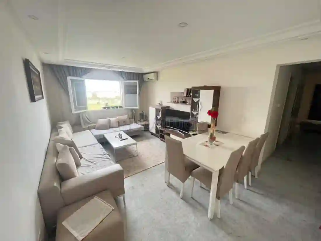 Cet appartement séduisant, et une vue dégage situé dans une résidence sécurisée aux Jardins de l'Aouina,. D’une superficie bien optimisée, il se compose d'un salon spacieux. La cuisine, entièrement aménagée, est équipée d’une plaque de cuisson, d’une hotte aspirante et d’un four électrique, complétée par un séchoir pratique. La partie nuit comprend deuxs chambres à coucher . Elles se partagent une salle de bain commune. L'appartement bénéficie d'un chauffage central et deux climatiseurs en Split système .Un abri de voiture à l'intérieur de la résidence est à disposition .