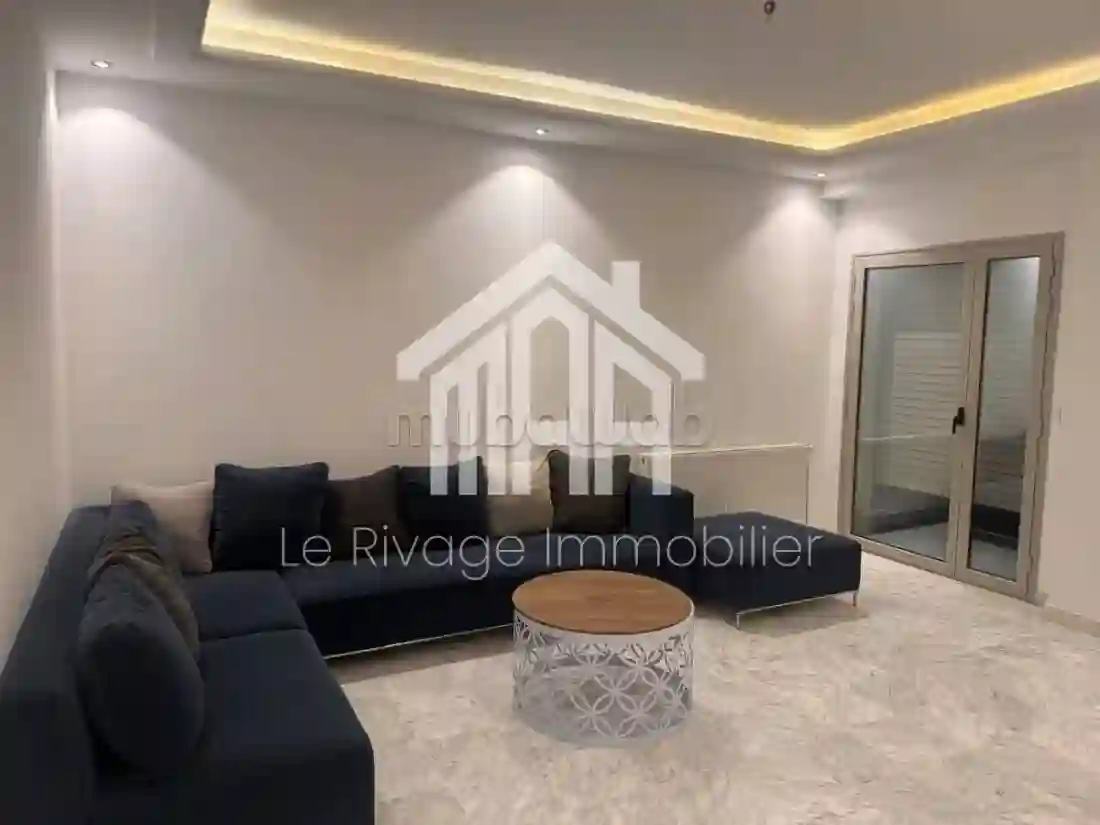 Le Rivage Immobilier vous propose à la location un appartement S2 meublé dans une résidence gardée aux Jardins De Carthage. Ce dernier est composé d'un salon donnant sur un terrasse , salle d'eau invités, d'une cuisine aménagée et équipée attenante à un séchoir, deux chambres à coucher et d'une salle de bain. L'appartement est équipé de la climatisation et du chauffage central et dispose d’une place de parking au sous-sol