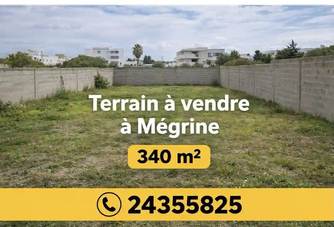 📍 Terrain à vendre – Mégrine Coteaux Opportunité rare sur avenue principale, dans un quartier de villas, à proximité immédiate des écoles et commodités. 🔹 Superficie : 340 m² 🔹 Façade : 23 mètres 🔹 Emplacement : stratégique & très recherché 🔹 Prix : 550 000 DT 👉 Idéal pour construction villa haut standing 📞 WhatsApp : 24 355 825/5878 030 📌 Riahi Immobilier Since 2020