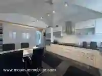 Villa Dream 2 AV062 A vendre une villa située à Hammamet Nord proche d’Hôtel Sultan (sur la colline). Il s’agit d’une superbe propriété érigée sur trois niveaux et composée de 4 suites, un double salon avec une cheminée, un coin salle à manger et un coin billard, une cuisine spacieuse et bien équipée, une buanderie, une chambre de lecture, une salle d’eau, quatre salle de bain et une grande terrasse possédant une superbe vue mer. Elle est équipée de chauffage central et de climatiseurs. La propriété dispose d'un grand jardin, une piscine et un garage. Le tout sur une surface de 1000m². Titre foncier individuel. Prix : 1 200 000 DT Pour toutes informations nécessaires et éventuelle visite, vous pouvez nous contacter sur le 00216 50 844 610 / 22 605 844 ou par email à e-mail Agence Mouin Immobilier International Vous trouverez toutes nos offres en visitant notre site web www.mouin-immobilier.com