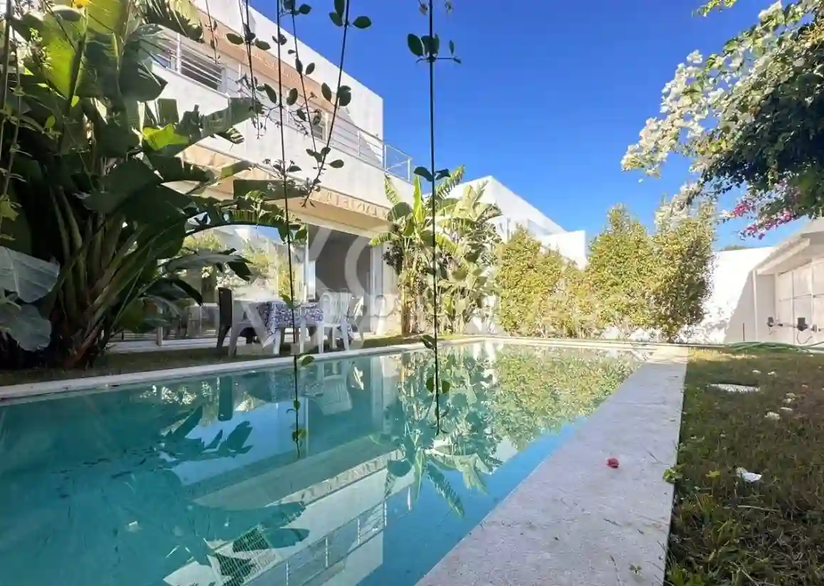 369 UNIVERS.A.I, agence immobilière située à La Marsa, vous propose à la location une villa jumelée avec piscine à Gammarth. Elle est composée comme suit: - au rez-de-chaussée: un salon, une cuisine entièrement équipée avec terrasse et une salle d’eau invités, - à l’étage: une suite parentale avec terrasse, 2 chambres à coucher et une salle de bain commune, - au sous-sol: un séjour, une chambre de service, une salle de bain, un hammam, une buanderie et une terrasse d’hiver, - à l’extérieur: une piscine, un jardin, une terrasse et 2 places de voitures. - Villa connectée, système domotique (éclairage, climatisation, stores et électro-ménager), Hammam avec vapeur, proche de la mer, caméra de surveillance, commerces à proximité.