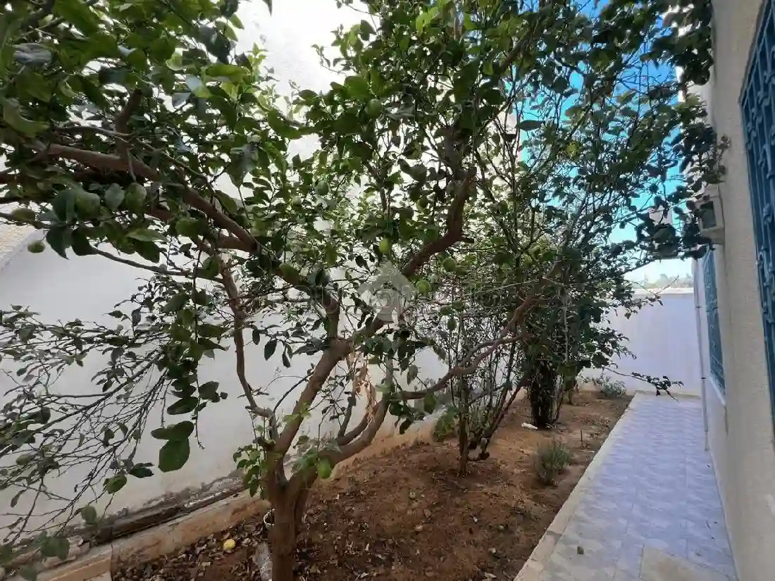 Il s'agit d'une villa avec un jardin tout autour, possède deux étages chacun avec une entrée indépendante. Elle est située à Hammamet Nord, au cœur de la zone touristique pas loin de l’hôtel Radisson bleu.Elle convient parfaitement à une grande famille.Au rez-de-chaussée, un salon, une grande cuisine indépendante équipée d'une plaque de cuisson, d'un micro-ondes et d'une machine à laver, avec un accès direct à l'extérieur. La partie nuit comprend une suite parentale avec salle de bain et douche et un placard de rangement. Deux autres chambres, dont l'une avec un placard de rangement. L’ensemble partagent une salle de douche. Le premier étage se compose d'un grand salon lumineux grâce à son ouverture sur un balcon. Une cuisine équipée. trois grandes chambres avec placards de rangement et d'une salle de douche commune. Un abri pour deux voitures est disponible à l'intérieur de la propriété. La villa est équipée du chauffage central et de la climatisation par système split.